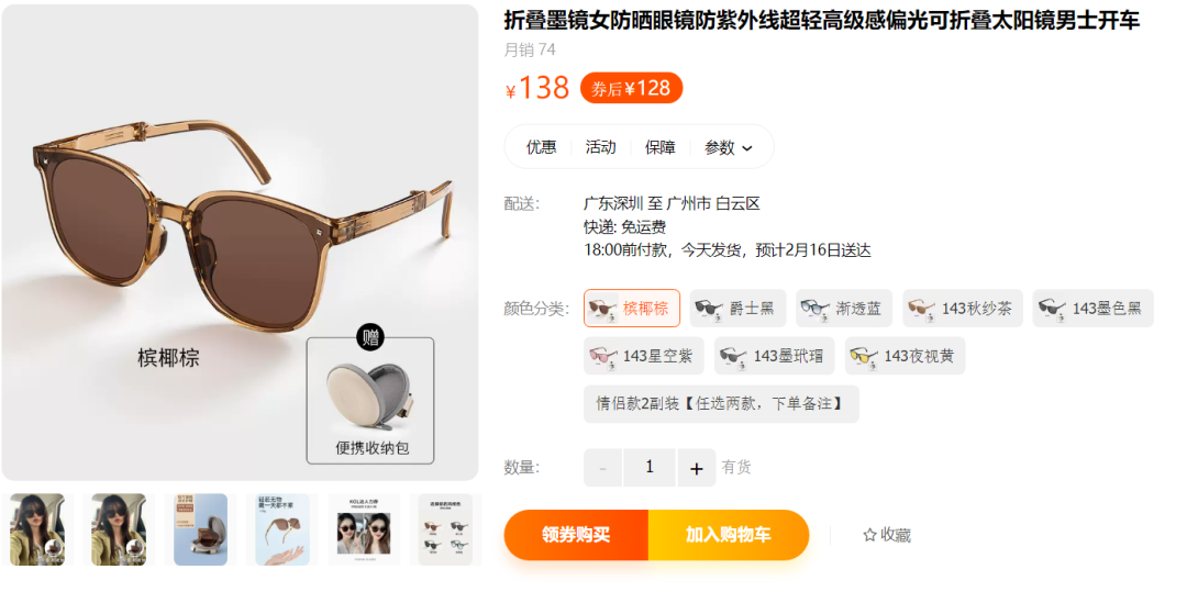 至於價格,這款墨鏡在官方旗艦店的價格是128一副: