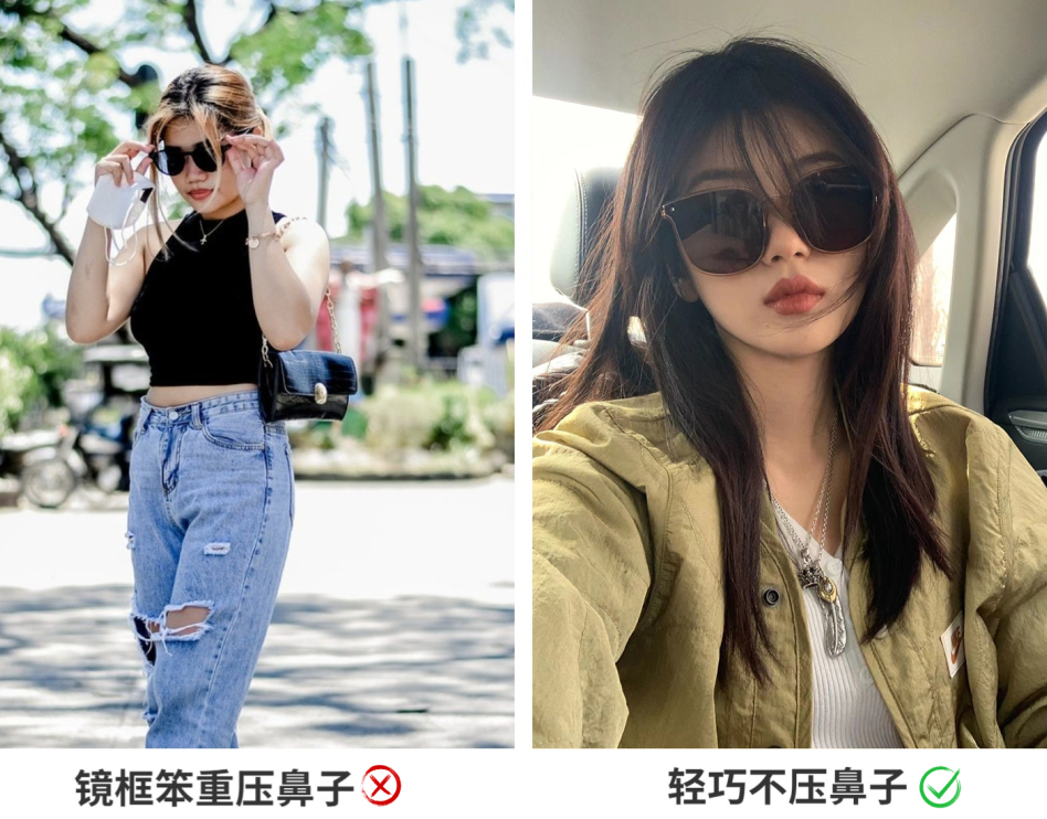 傳統墨鏡比較笨重,戴久了鼻樑的位置很容易出現尷尬的紅印。