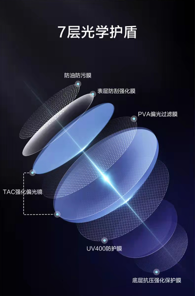 我們的偏光墨鏡採用的是TAC鏡片,可以阻隔刺眼眩光。