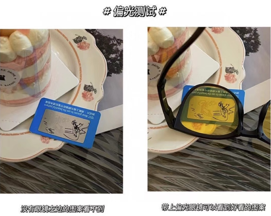 測試卡片上的部分圖案用肉眼無法識別,而透過偏光鏡片可以清晰辨認出來。