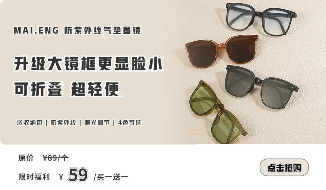 不偏光的59元買一送一,偏光的69兩副。庫存不多了,喜歡的小夥伴抓緊時間哈~