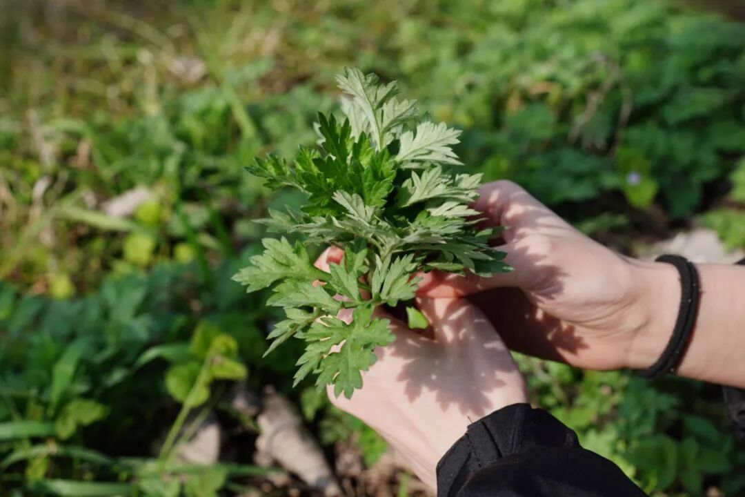 這個時節,野生艾草還是嫩苗,水嫩嫩散著清香;