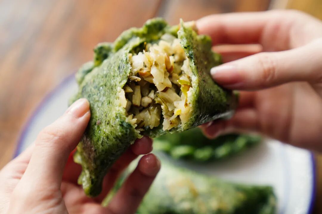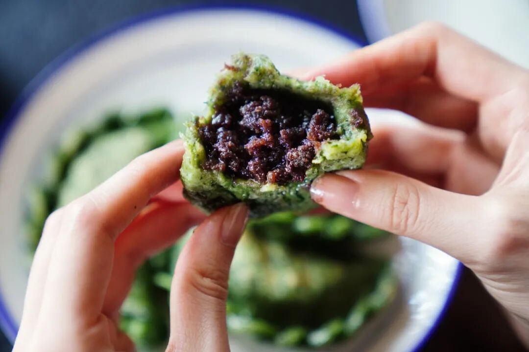 吃到嘴裡,艾草的清香加上恰好的餡料,滿口都是“春天”的味道。