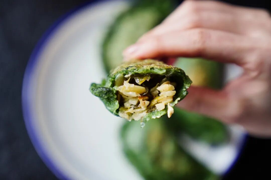 鹹口的艾餃,還可以煎著吃,更能激發香氣,外皮金黃焦脆,內裡軟糯鮮香,真絕了!