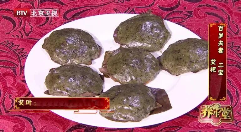 節目組曾拜訪了一對百歲夫妻:奶奶100歲,爺爺104歲了,身體健康。節目組探求二老的飲食營養時,百歲老人介紹的其中一寶就是:艾葉粑粑