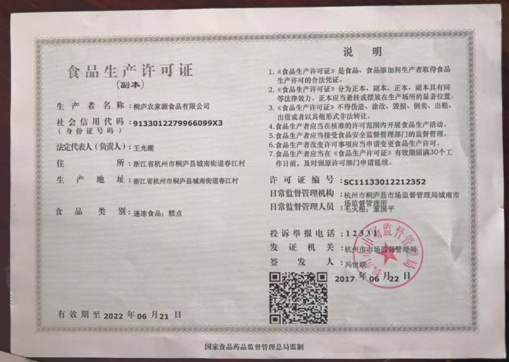 擁有正規的生產許可證,食物的各項指標均為合格,大家可以放心吃。