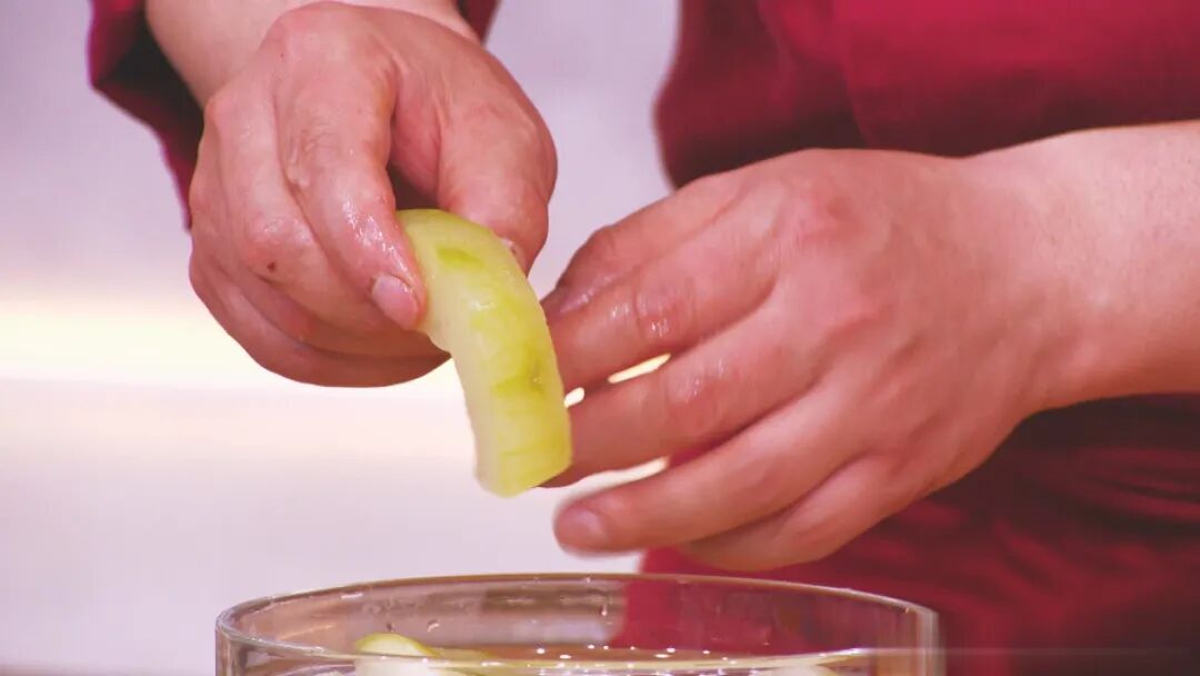 冬瓜焯水3-5分鐘過涼,打碎成蓉。