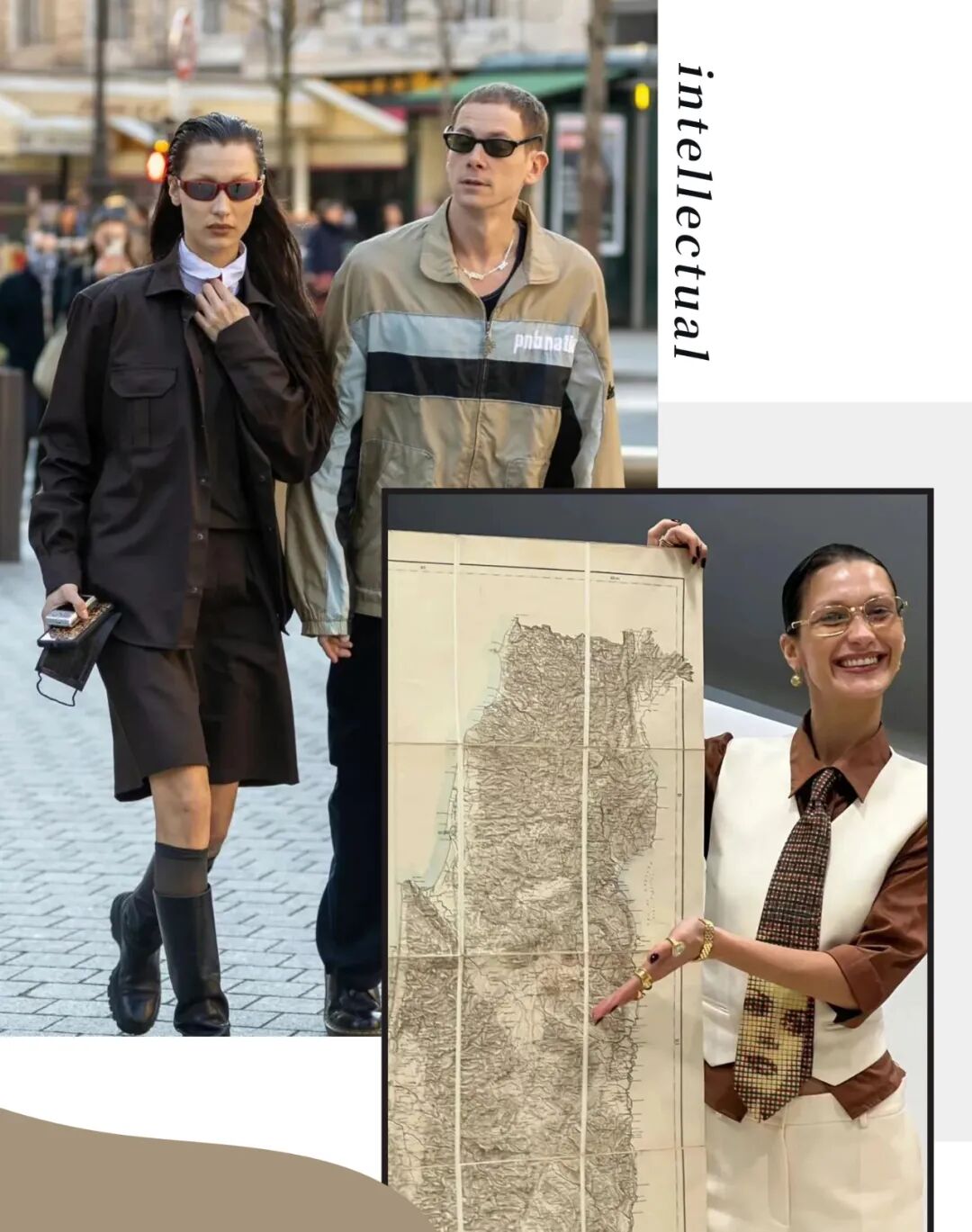 Bella Hadid 更是將該風格的塑造推向了高峰,將知識分子的形象與美式復古充分融合,既有書卷氣,又有時髦感。