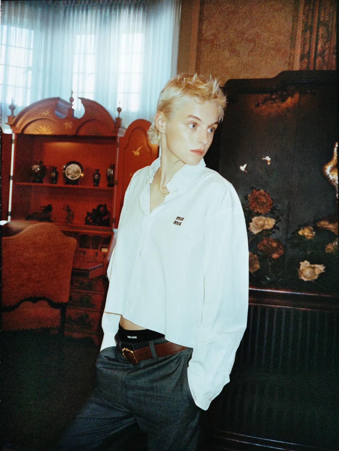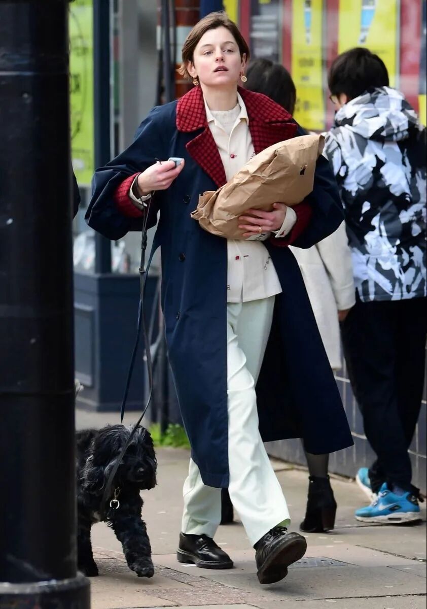 Emma Corrin總是可以在隨性又不失古靈精怪的同時,把Miu穿得更加率性不羈▼