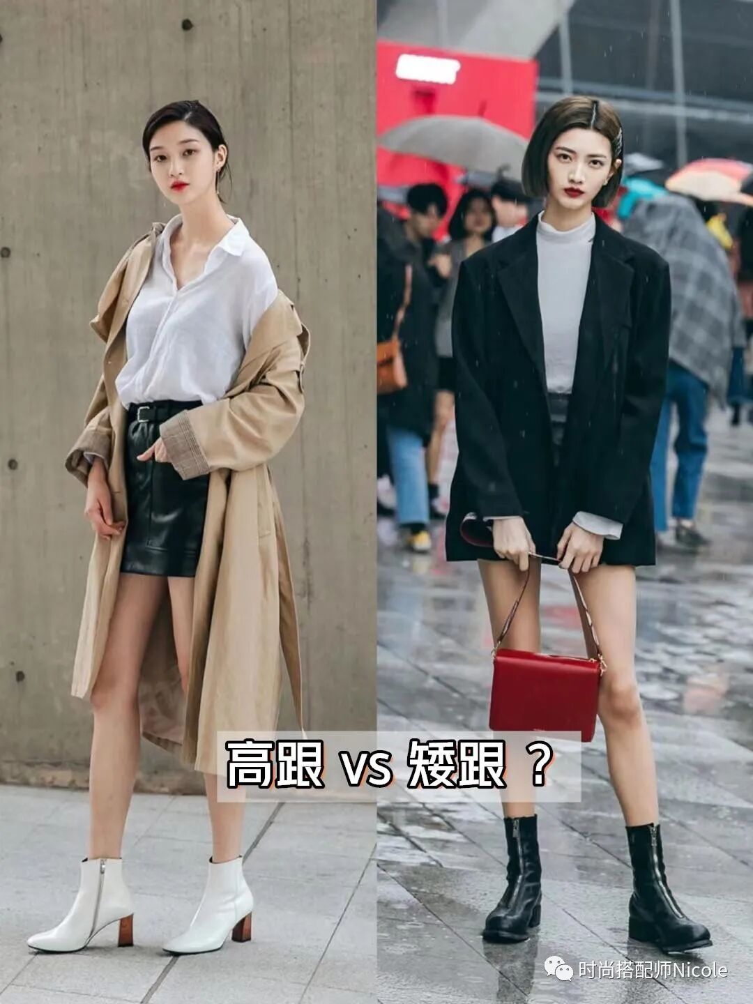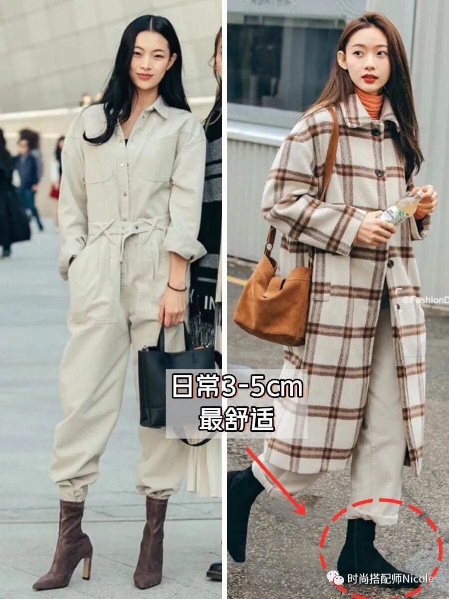但是這個公式也不是萬能的,不同的穿搭方式適合的鞋跟高度也不一樣,還是要根據搭配特點、靴型特點來選擇。