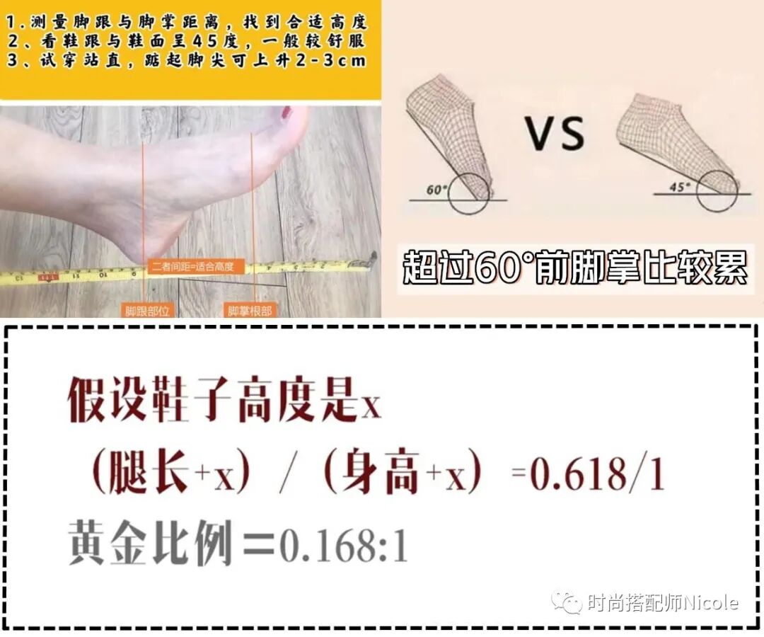 靴子的跟該選多高?是不是越高越顯瘦?可以根據鞋跟高度標準公式來選,但是日常儘量選鞋跟和地面呈45°角的,最為舒適。