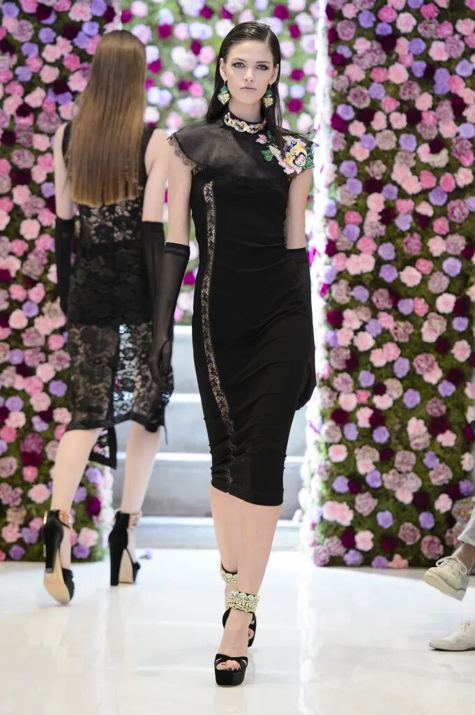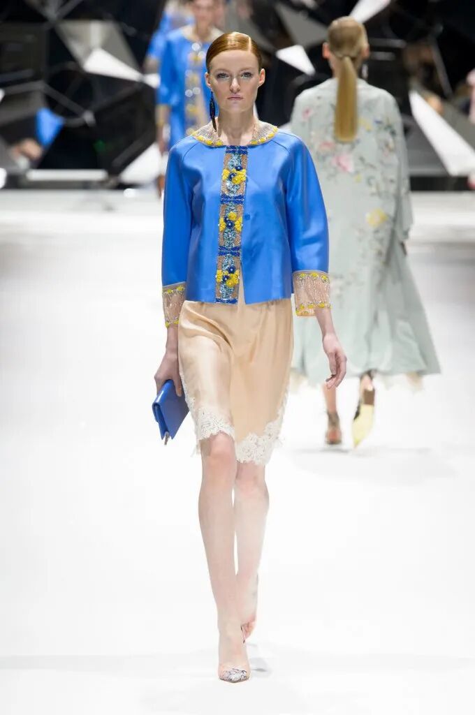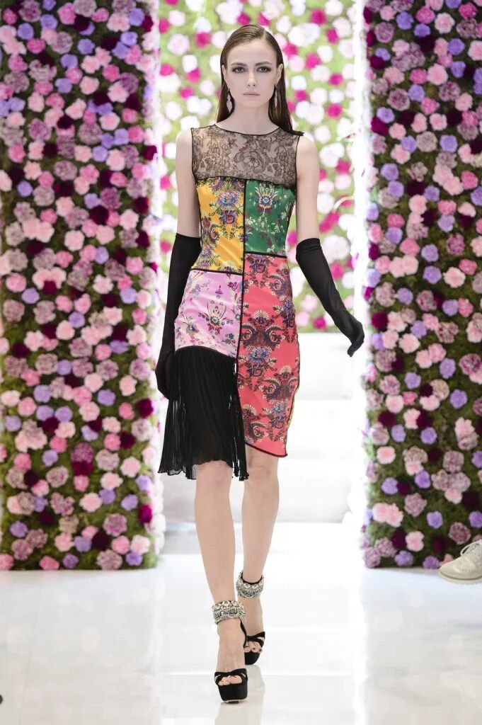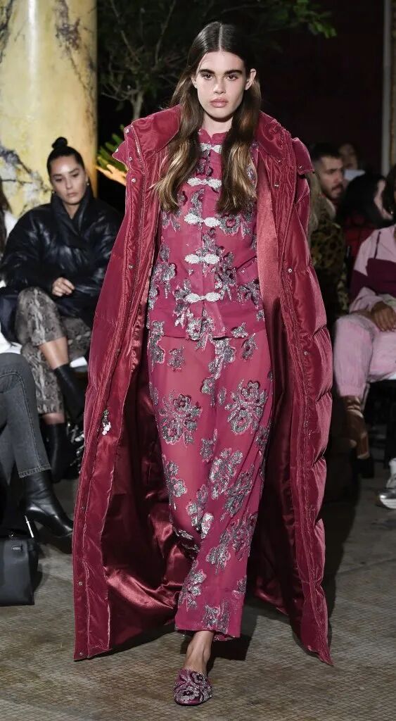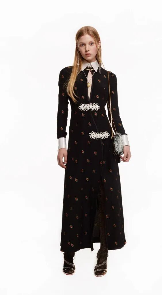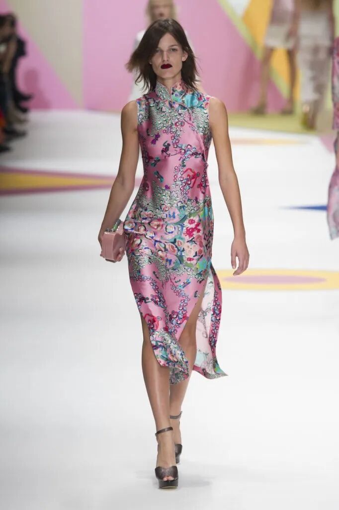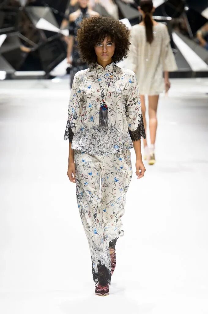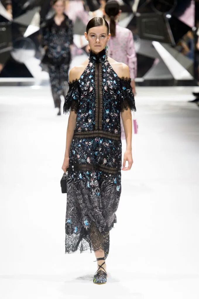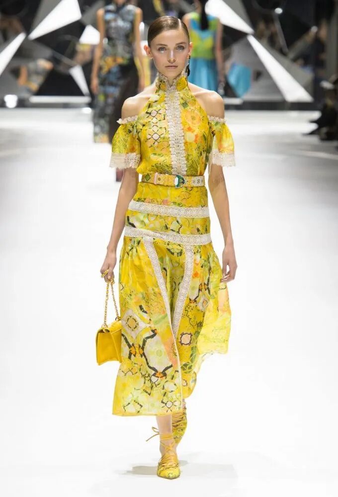 旗袍元素經常與蕾絲擦出火花,古典與嫵媚完美結合。經過精美刺繡和迷幻幾何印花的打造,旗袍這一中國傳統服飾,增添了幾分現代感,不僅婀娜多姿,也更飄逸靈動了。