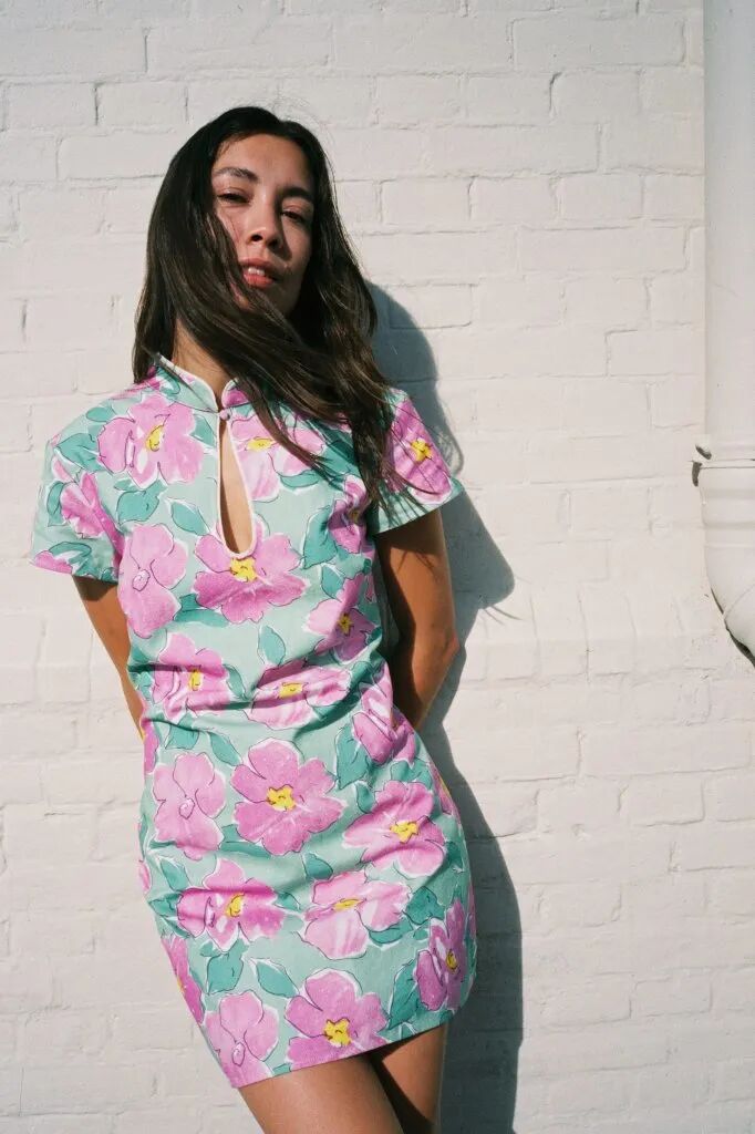 從印花、絲綢面料、用色、旗袍廓形、左衽等多方面細節,將中西風情糅合得恰到好處,剪裁講究,款式簡潔,很適合日常通勤穿著。