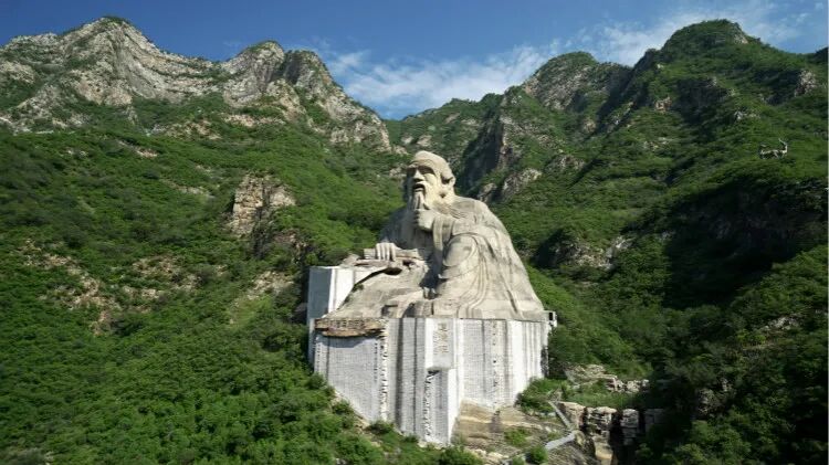 老子塑像。聖蓮山始建於唐代,盛於晚清,建廟宇於峭畔,佛道合一,演繹出獨特的文化特色。