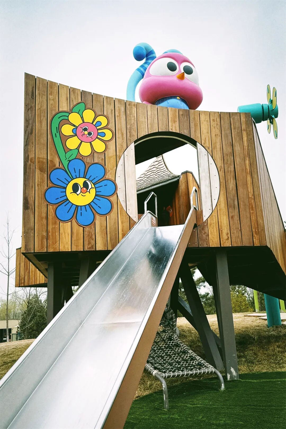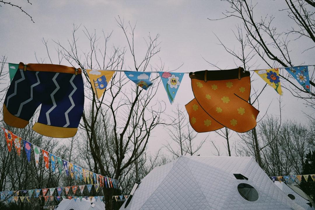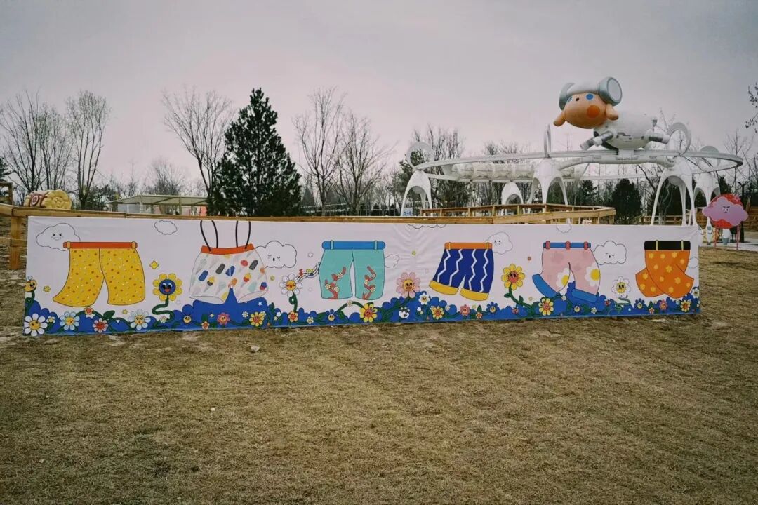 家人們為他準備了好多花褲子掛在樂園裡,