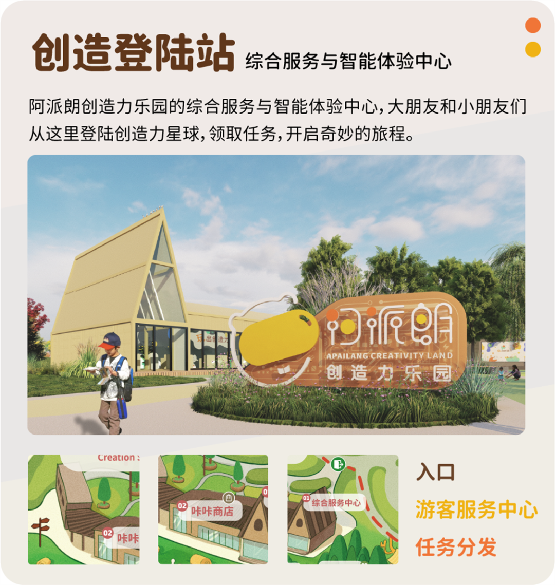 阿派朗創造力樂園是一座,將科技轉化為親子游玩體驗的智玩IP樂園。樂園包含80000平米超大戶外空間,佈局【創造登陸站、未來牧場、密碼天才灣、超級咔咔、元氣宇宙、律動森林、派派營地、咔咔美味村】八大主題版塊,結合智能交互手環和線上任務,體驗混合現實探索遊玩。阿派朗邀請你一起玩出創造力!