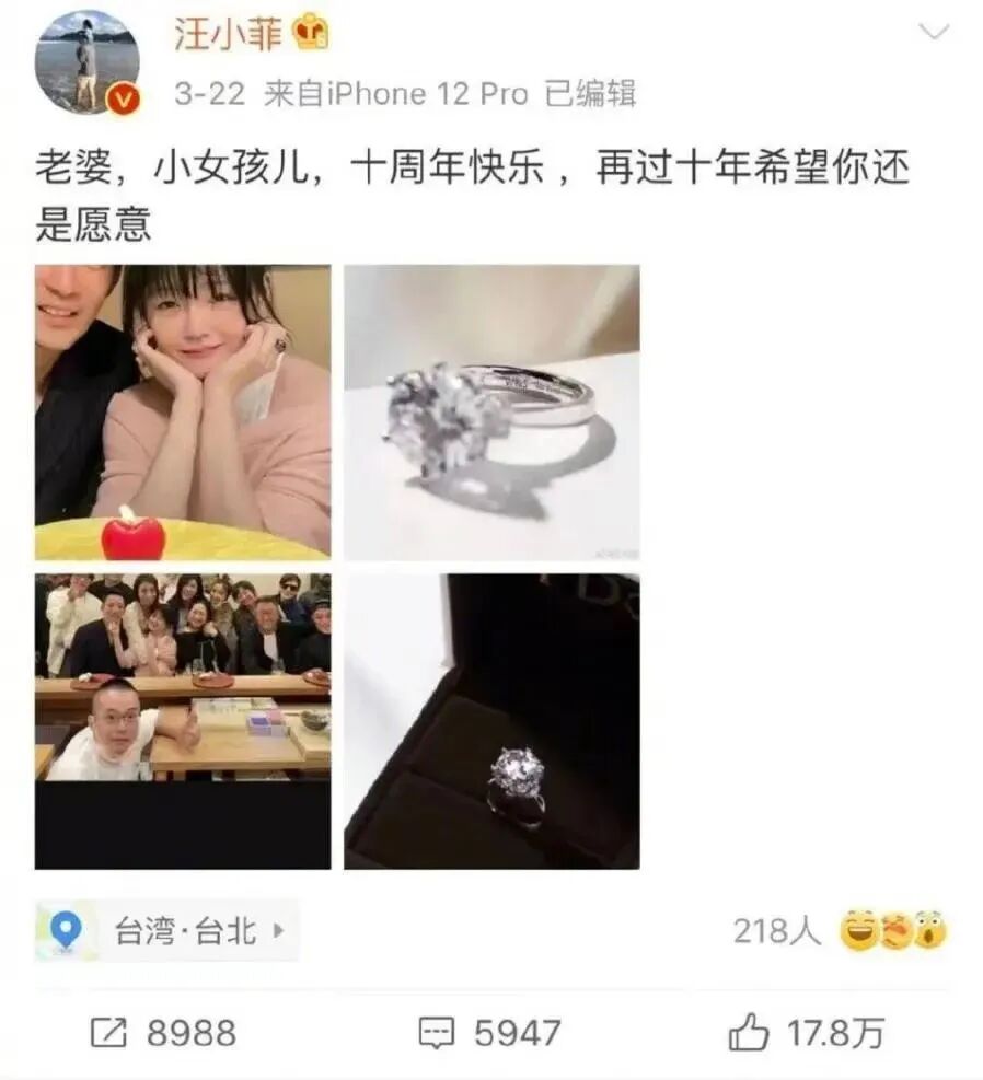 甚至大S和汪小菲這,在離婚前最後一次週年紀念日時,也曬出過I Do鑽戒做紀念(換個說法,收費為I DO做了一次軟推廣)