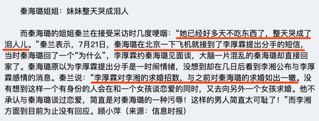 李厚霖先是否認和秦海璐戀愛,後來又改口。