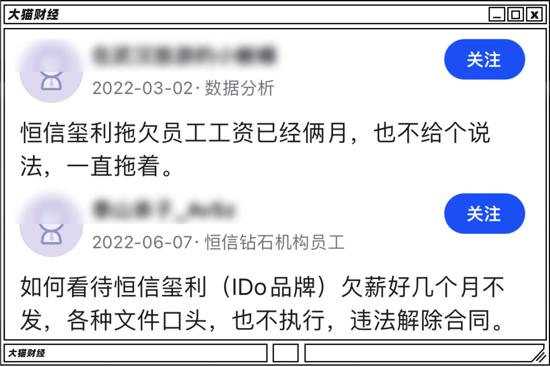 2022年初的時候,恆信璽利就被爆出欠薪傳聞,不少員工在社交平臺發文討薪,還有供應商在李厚霖的微博下留言追討拖欠的款項,自然也是無人理會。