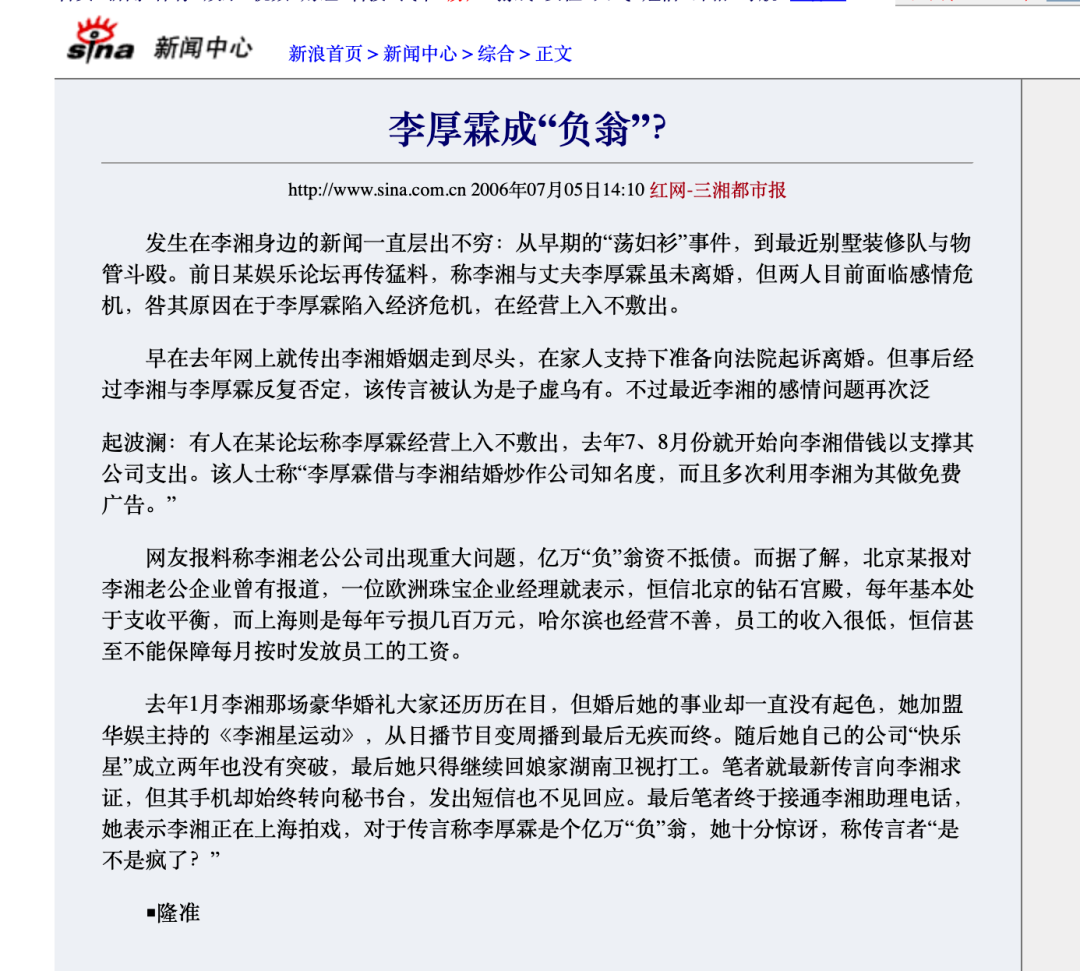之後又傳出李厚霖追求著名歌手孫悅,然後就是2004年,李厚霖與知名主持人李湘相識33天后,高調宣佈婚期的消息。
