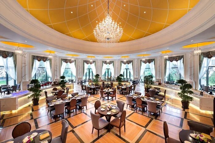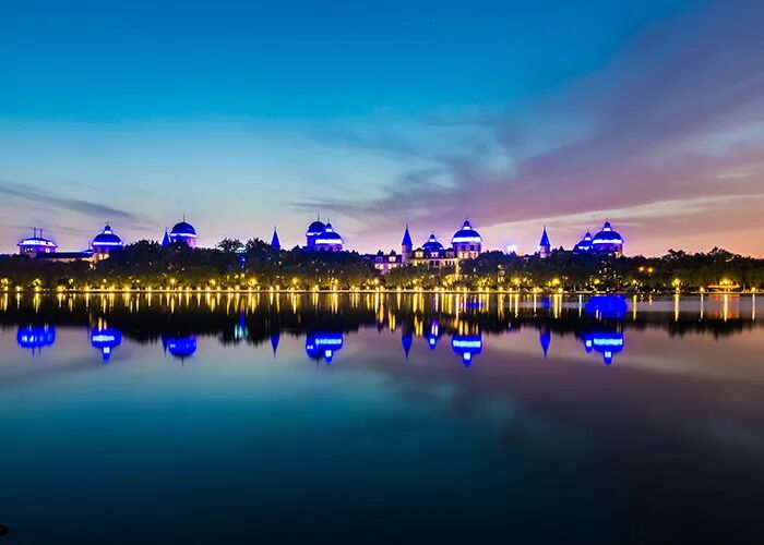 透過東方新古典主義美學的視角,將神秘古堡與現代多功能酒店合二為一,與周邊綠地湖泊完美相融,讓您仿若置身異國,流連忘返。