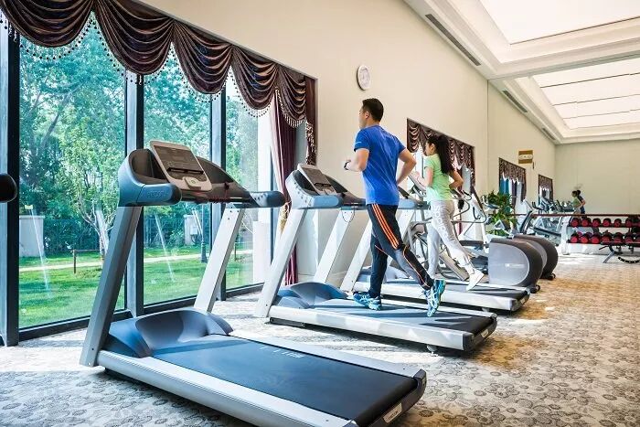 健身房內配備先進的有氧運動器材,超大落地窗還能欣賞窗外園景,享受健康的生活方式。