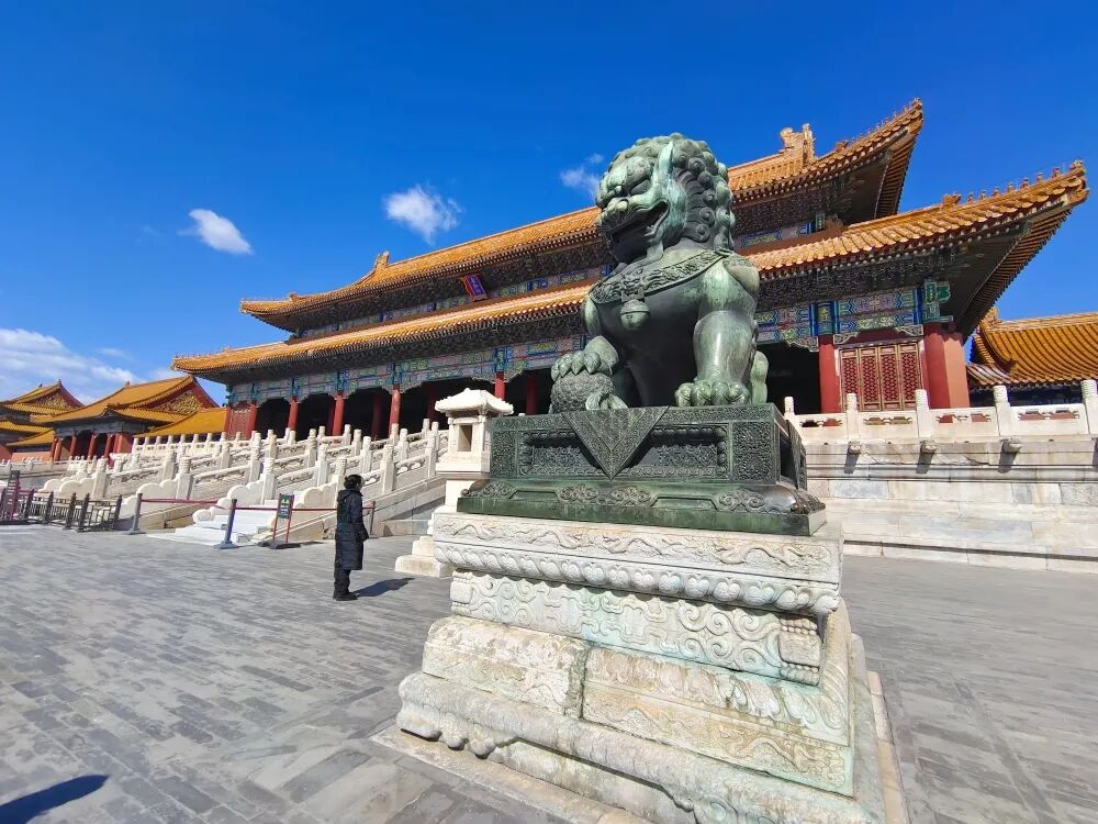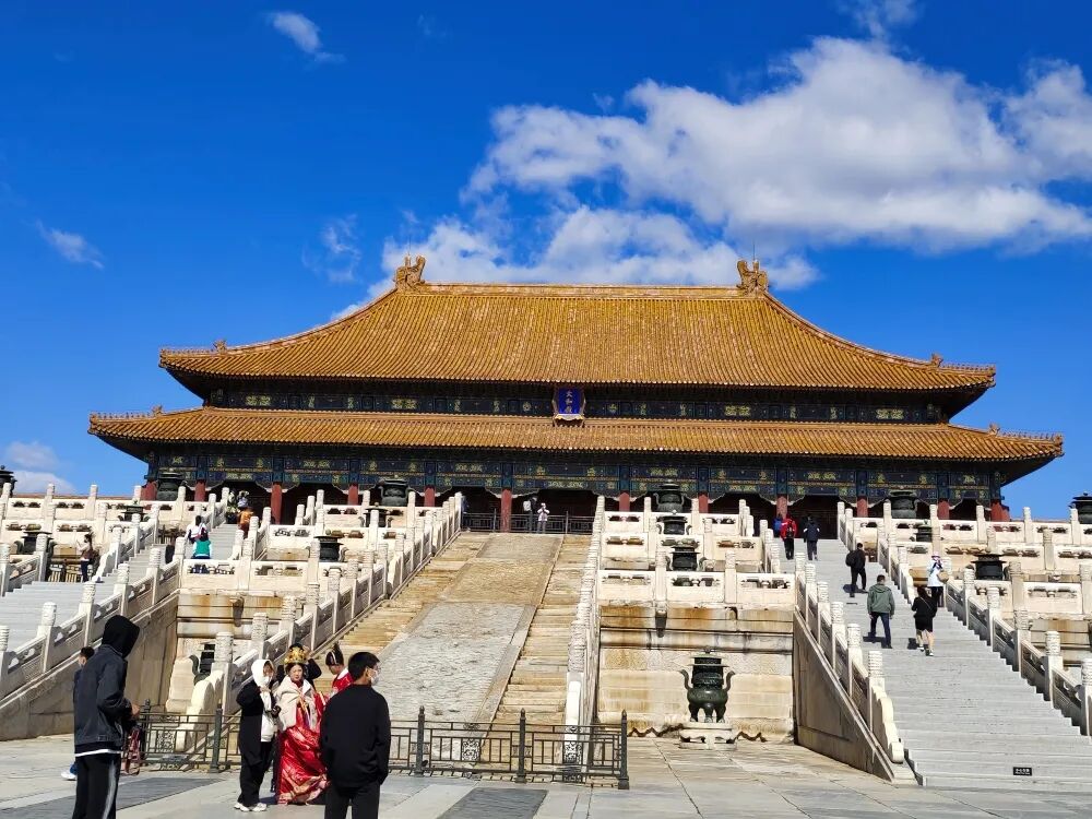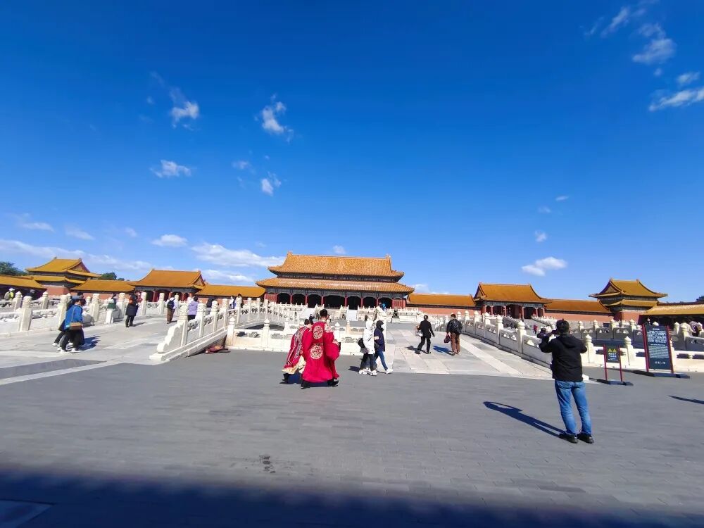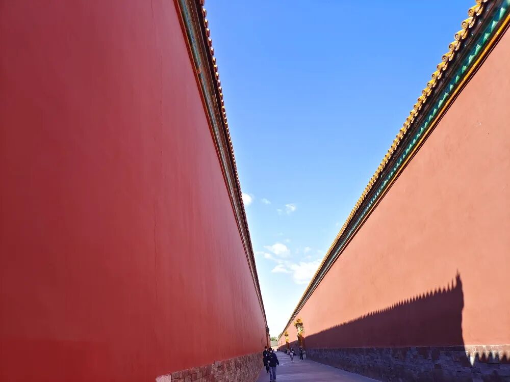 走進紫禁城,金頂紅牆在藍天的襯映之下