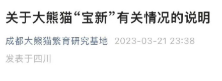 3月21日晚,成都大熊貓繁育研究基地微信公眾號發佈《關於大熊貓“寶新”有關情況的說明》,全文如下: