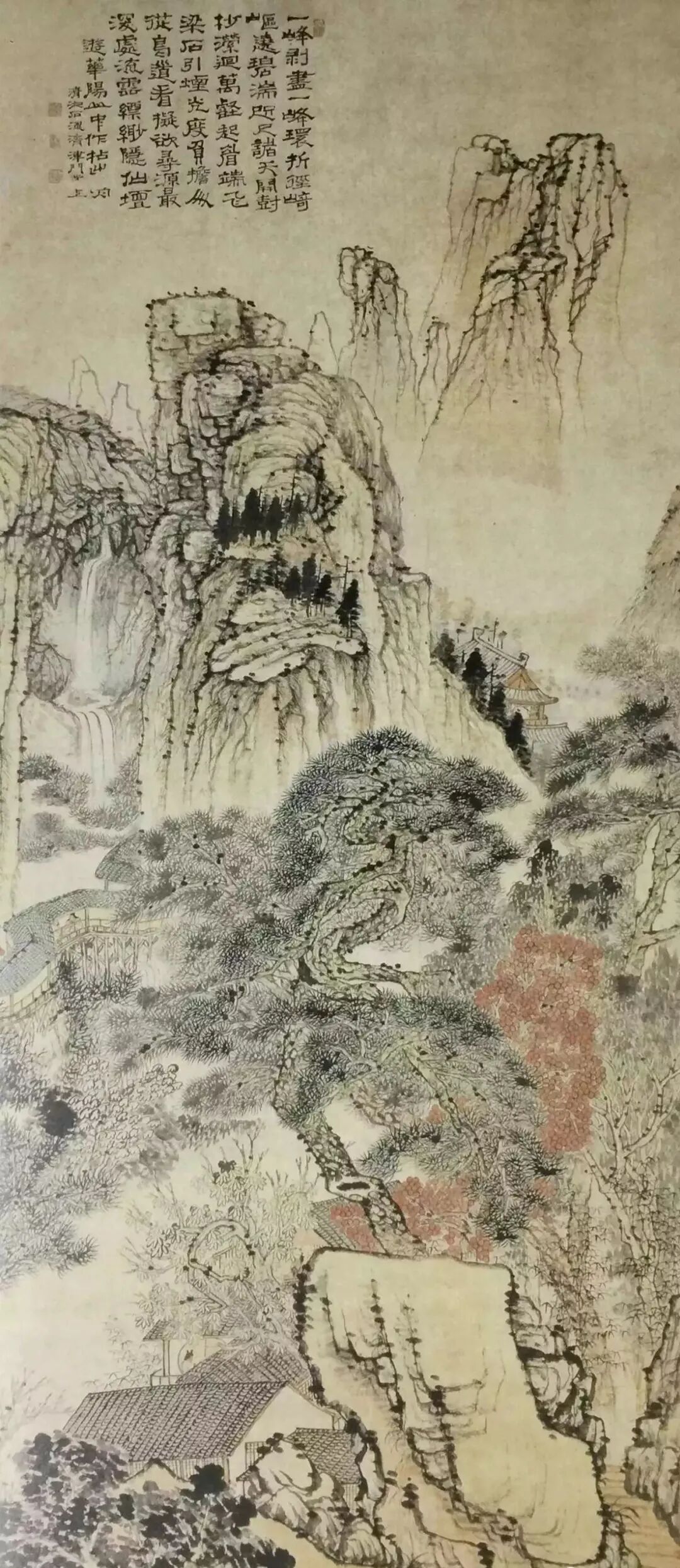 石濤《黃山紫玉屏圖》,紙本設色,90×44.5cm,清代