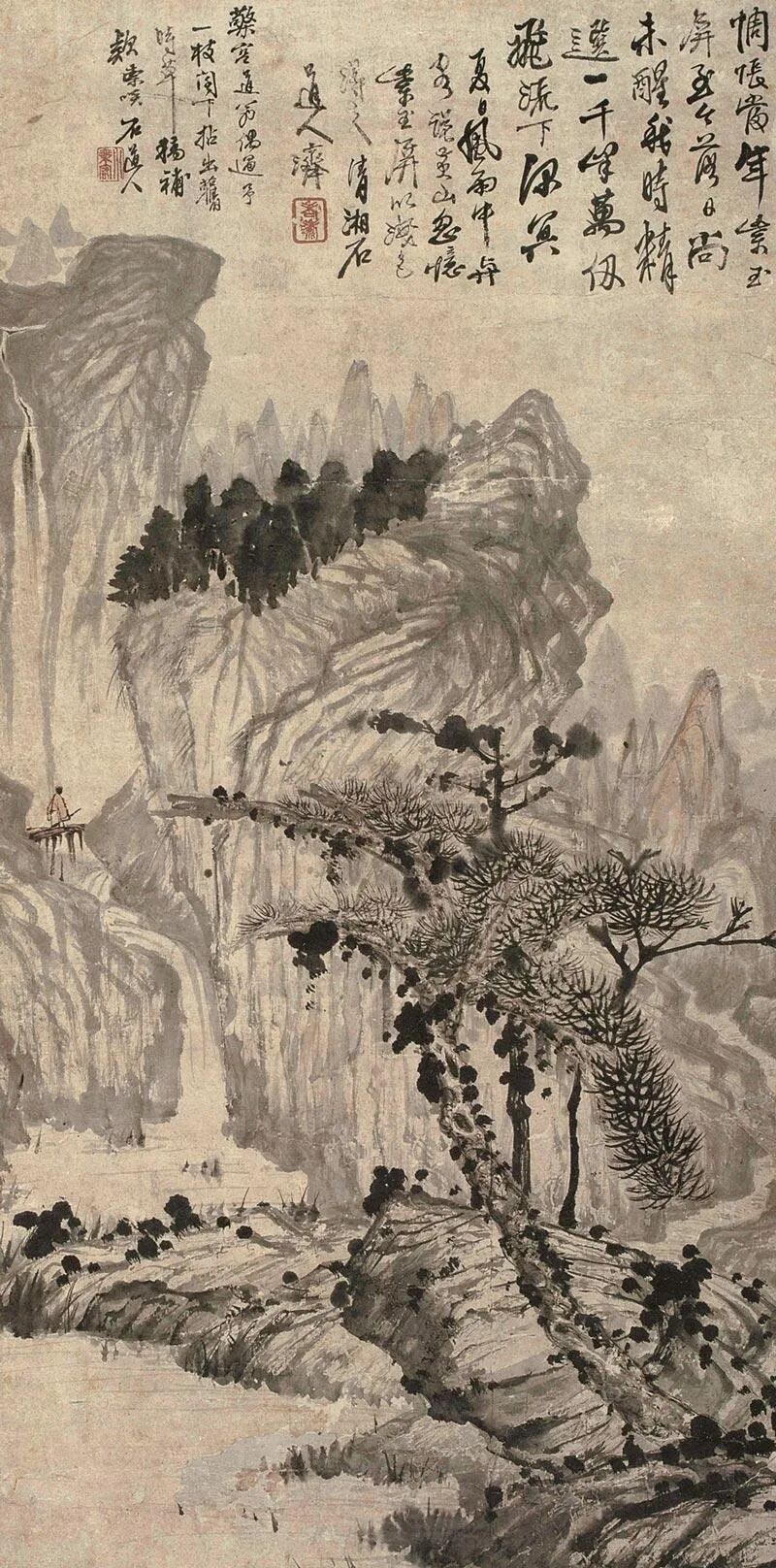 石濤《遊華陽山圖》,紙本設色,239.6×102.3cm,清代