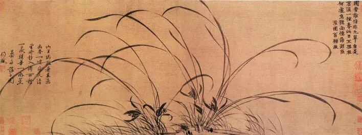 趙孟堅《墨蘭圖》,紙本水墨,34.5×90.2cm,宋代