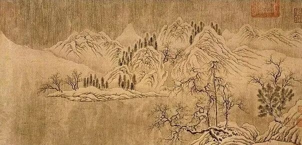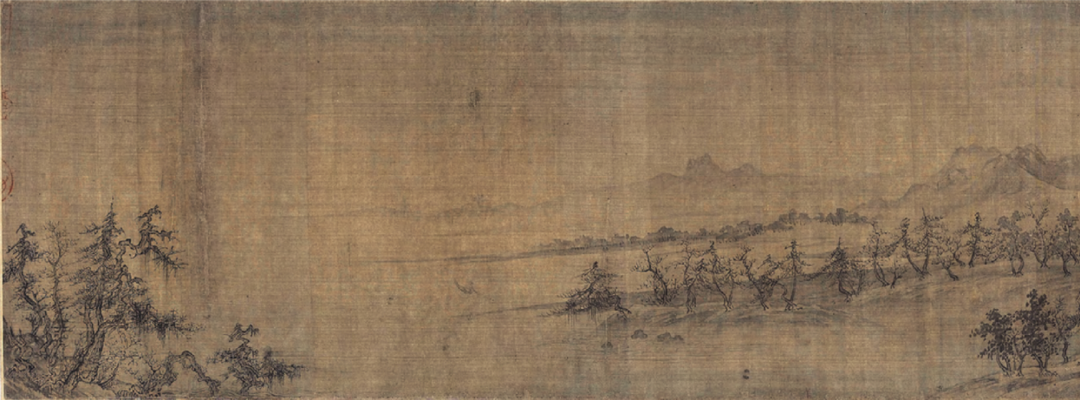 王維《長江積雪圖》局部,絹本設色,28.8×449.3cm,唐代
