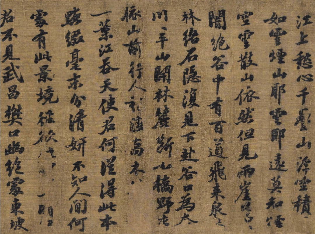 王詵《煙江疊嶂圖》水墨版背面蘇軾行書詩二首及王詵唱和詩二首並跋,局部