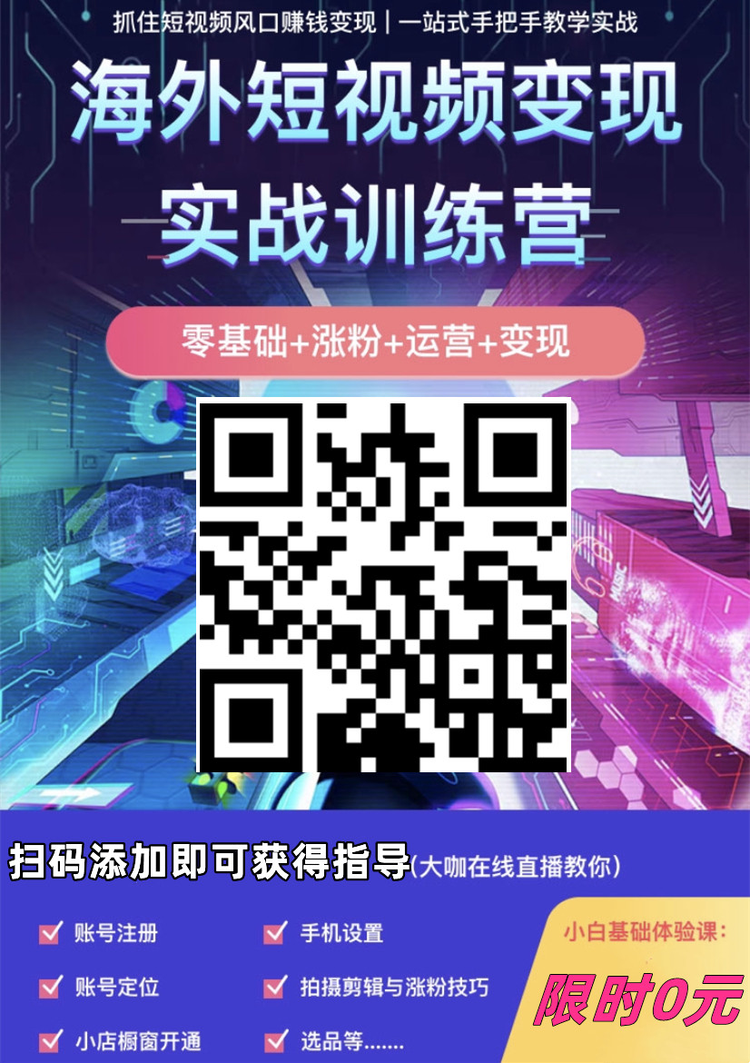 現在,我把【0基礎海外短視頻速成訓練營】 推薦給你,手把手教你賺錢!