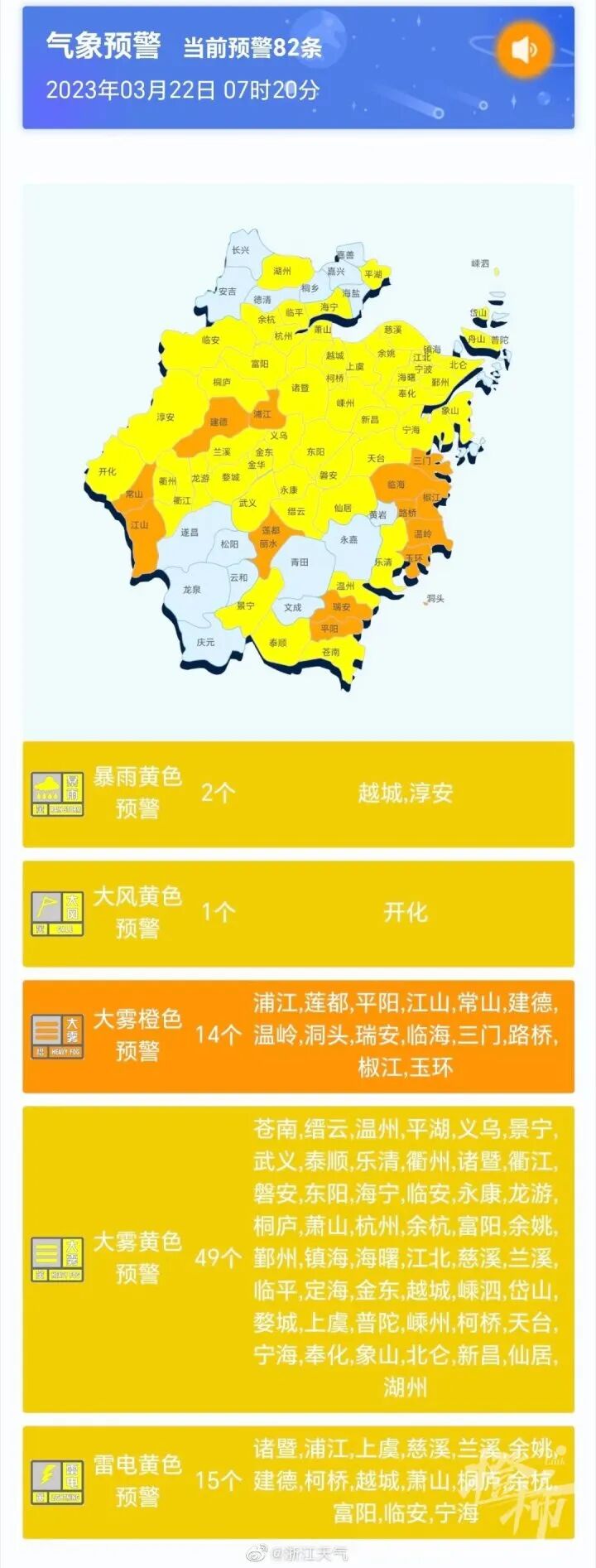 動雷了,代表強對流天氣來了。一早,我省就發了82條氣象預警。