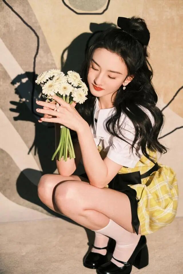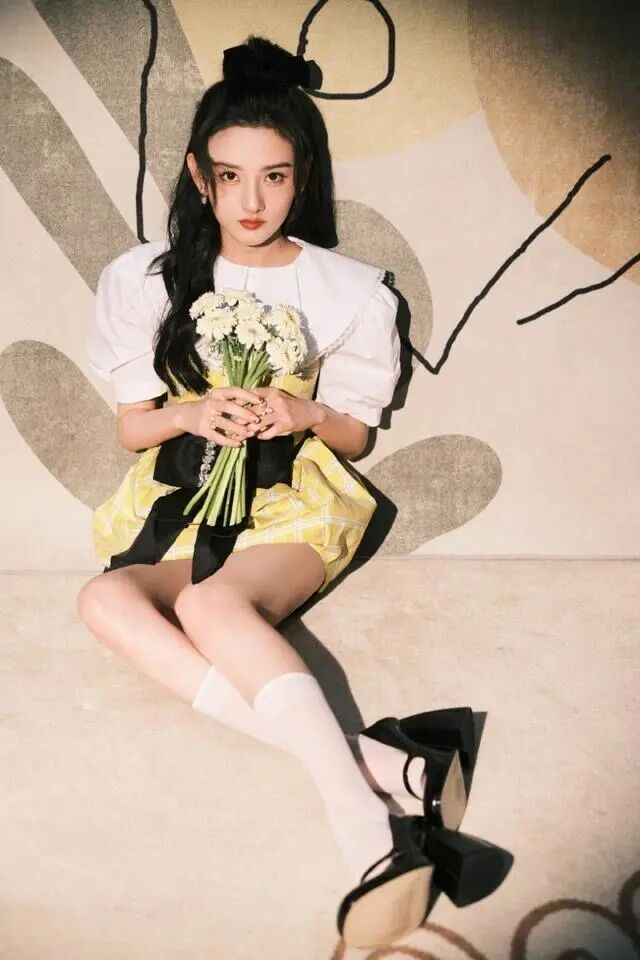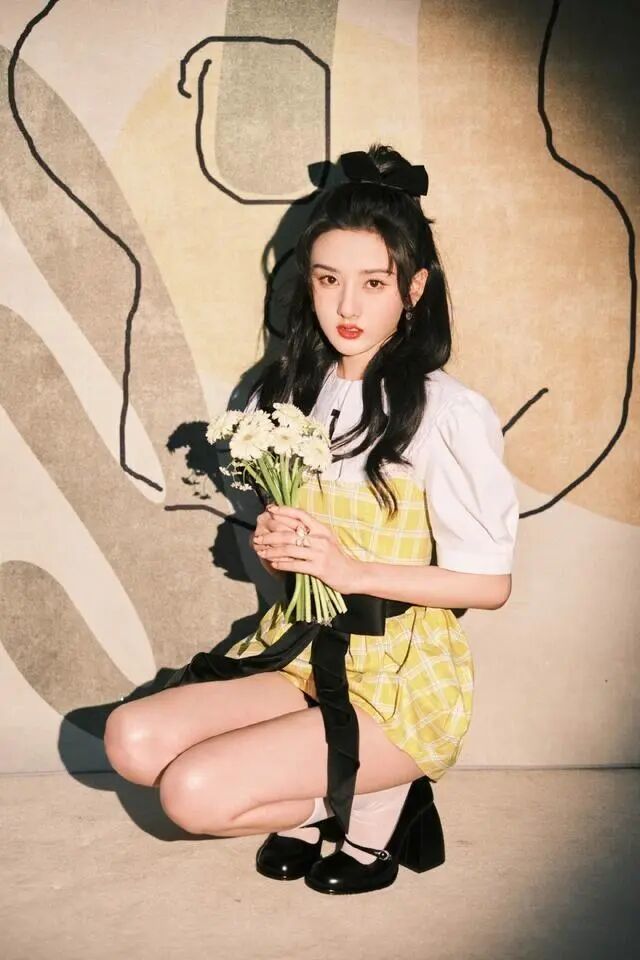宋祖兒選擇的這件拼接裙裝,下半身部分帶有復古感極強的格紋元素。但是配色以減齡感強的黃色為主,又能防止造型產生年代感。上半身拼接的純白色面料,也能凸顯女人的青春感。