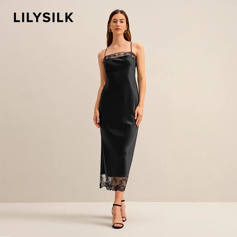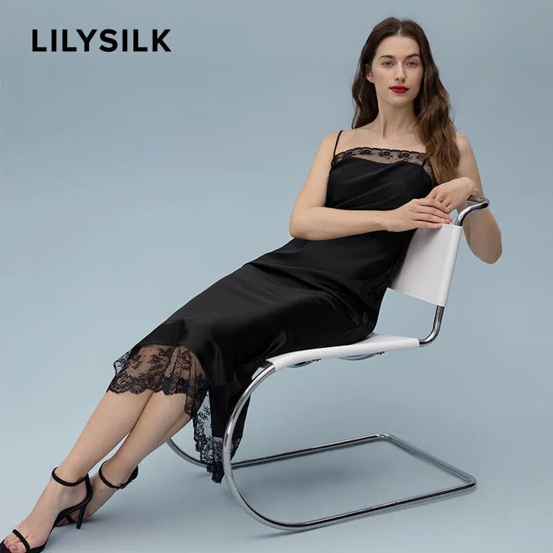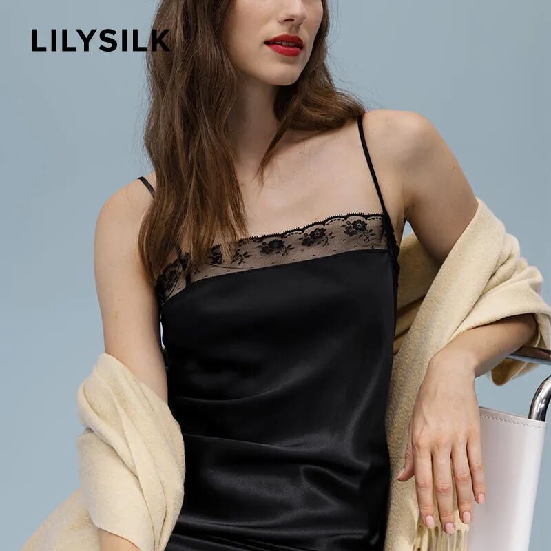 意式女人會選擇的黑色絲質裙,就是LILYSILK這條,用蕾絲拼接真絲互相輔助,女人味十足,性感指數max的款式了!