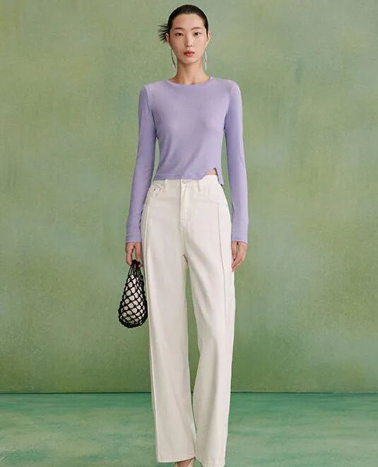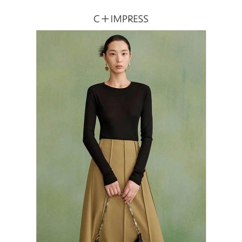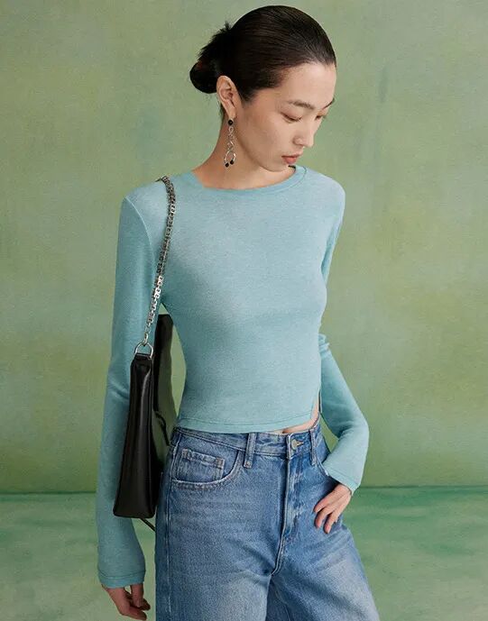 拿到這件長袖T恤時,就覺得它和絲質半裙很般配!包裹身材的修身高腰款,側面還有一個小開衩設計,能配合絲質半裙把曲線修飾得更玲瓏。