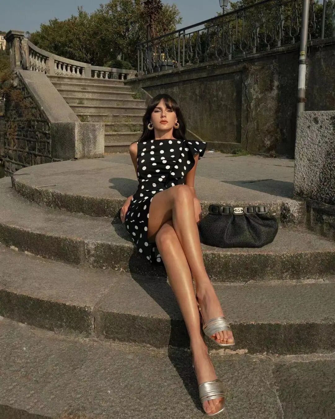 意大利女人的黑色絲質裙性感誘人,吊帶裙是最佳選擇。