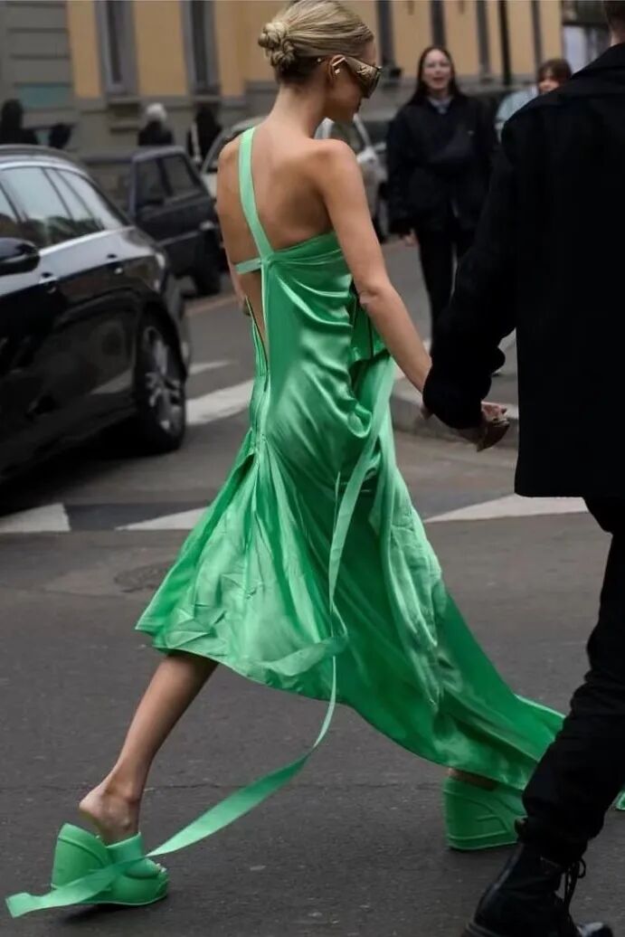刷著刷著,發現了一個有趣的現象,在熱烈的意大利女人身上絲質裙是明媚張揚,無盡奢華的存在,在清冷的北歐女人身上,絲質裙又是低調的質感單品。