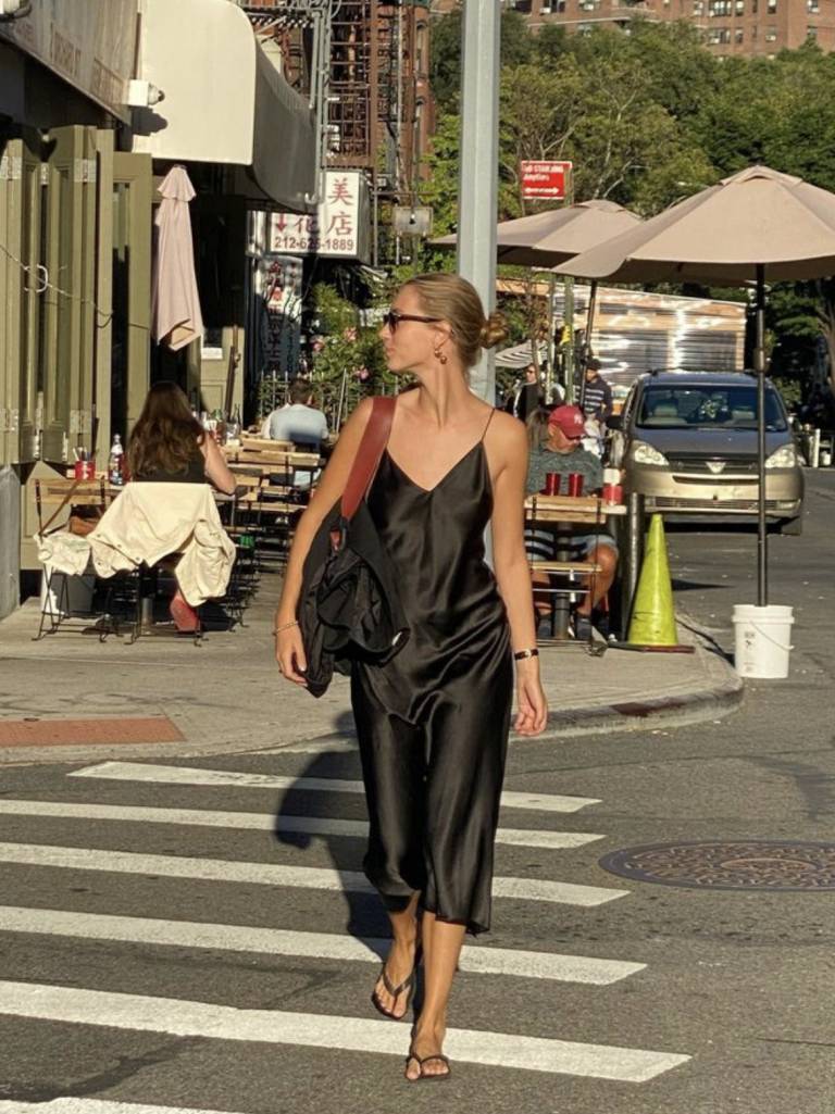 北歐女人的黑色絲質裙包裹感很強,很少露膚,會像Annabel RosendahlD和Pernille Teisbaek這樣,用醜涼鞋、人字拖讓黑色絲質裙變成一條普通的黑裙子。讓人覺得出現在街頭、公園、菜市場都不違和。