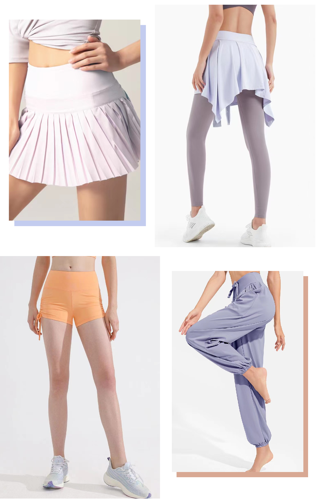 這家店的的下裝款式特別多,修身leggins、寬鬆運動褲、網球裙……甚至還有防止走光裙,可以滿足各種需求~