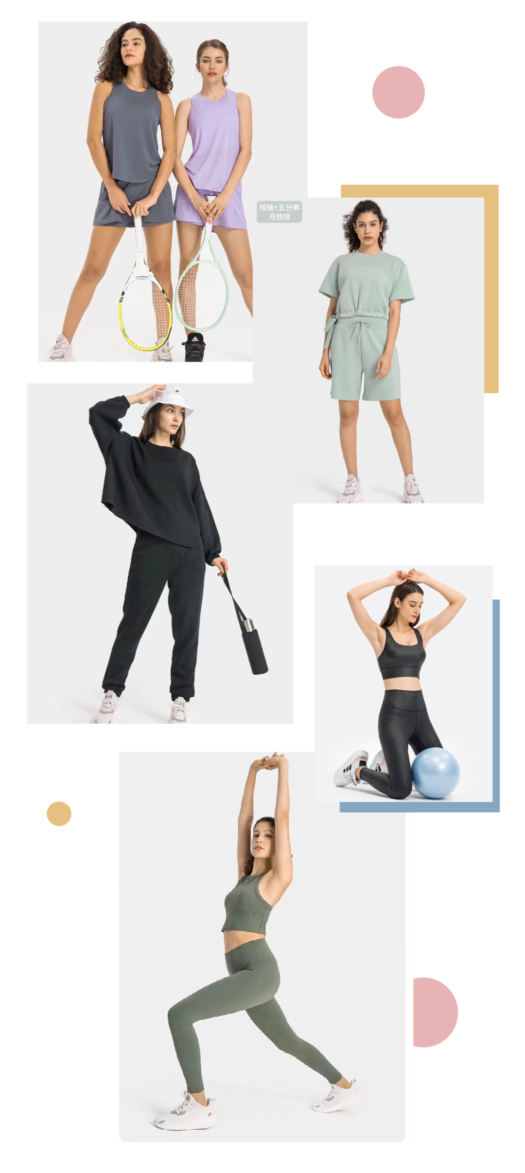 大部分用的都是高彈萊卡材質,彈性很棒,而且不容易掉檔,各種深蹲、彈跳都可以做起來~