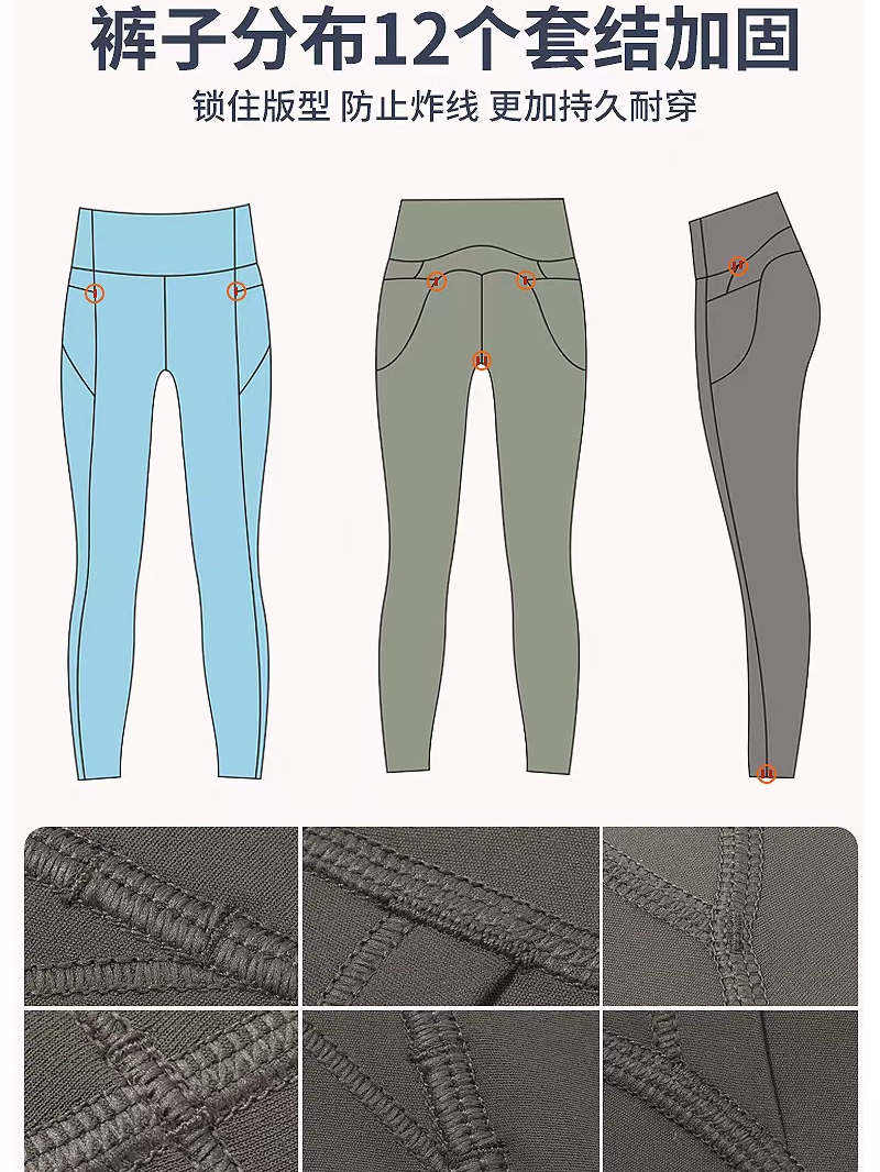 主要它的細節做的很好,把我們運動時候會遇到的問題都想到了。比如可以卷腹不卷邊,套結加固,防止炸線…..