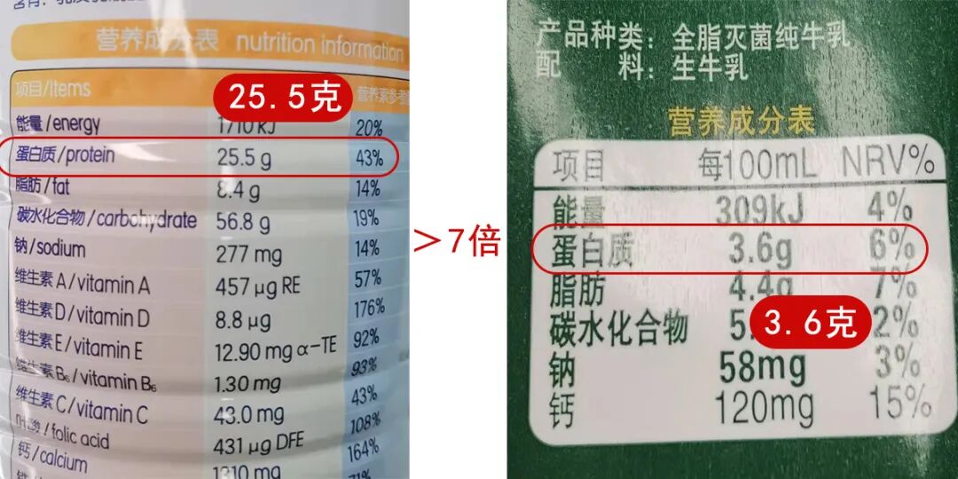 普通牛奶蛋白質含量高的也只有3.6g/100g