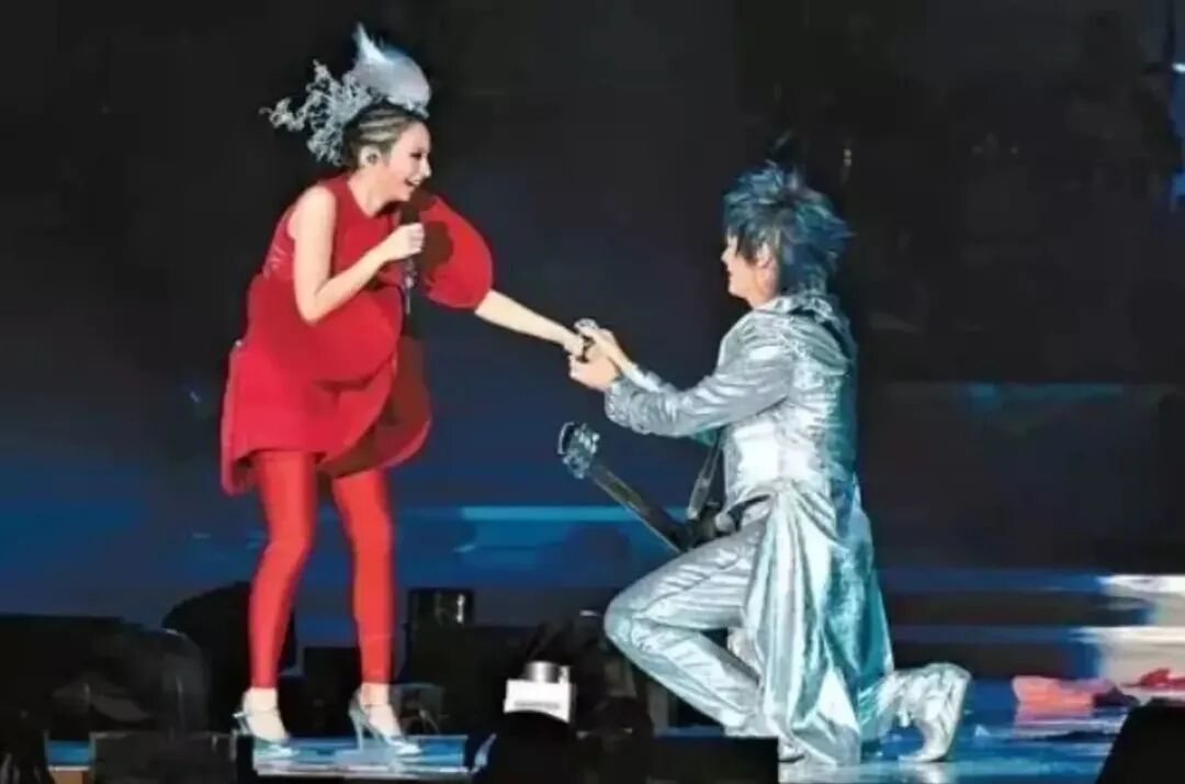 在飛兒樂隊“第十行星世界巡迴演唱會”上,阿沁更是在聚光燈的照耀下當眾向毫無準備的詹雯婷跪地求婚。