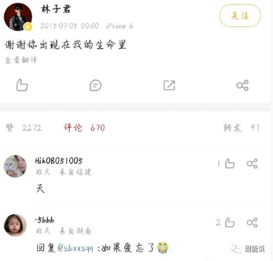 戚薇和李承鉉結婚後,疑似林子君發了很多條微博表達對這對感情的不捨。