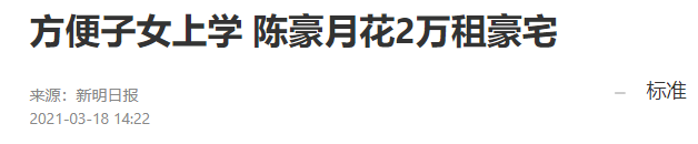 不過後來陳豪還是讓兒子轉去費曼所在的新加坡國際學校,為方便接送孩子,他們全家搬去南灣,租了個豪宅,月租七萬港幣,真的非常用心“雞娃”。