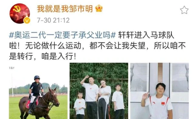 鄒市明也曾開心發微博說軒軒進入馬球隊了