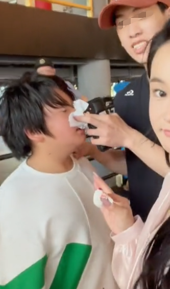 而鄒市明的兒子軒軒,從小和老爹練打拳,但鄒市明打起來也沒在放水的,直接把兒子鼻子給打出血。